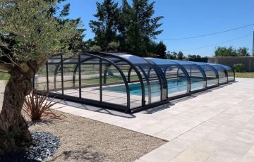 Abris mi-hauts et hauts : offrant un espace plus volumineux, ils permettent de nager même en position fermée ou de créer un véritable espace de vie autour de votre piscine.
