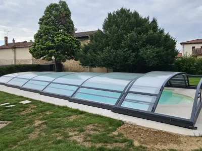 Abris mi-hauts et hauts : offrant un espace plus volumineux, ils permettent de nager même en position fermée ou de créer un véritable espace de vie autour de votre piscine.